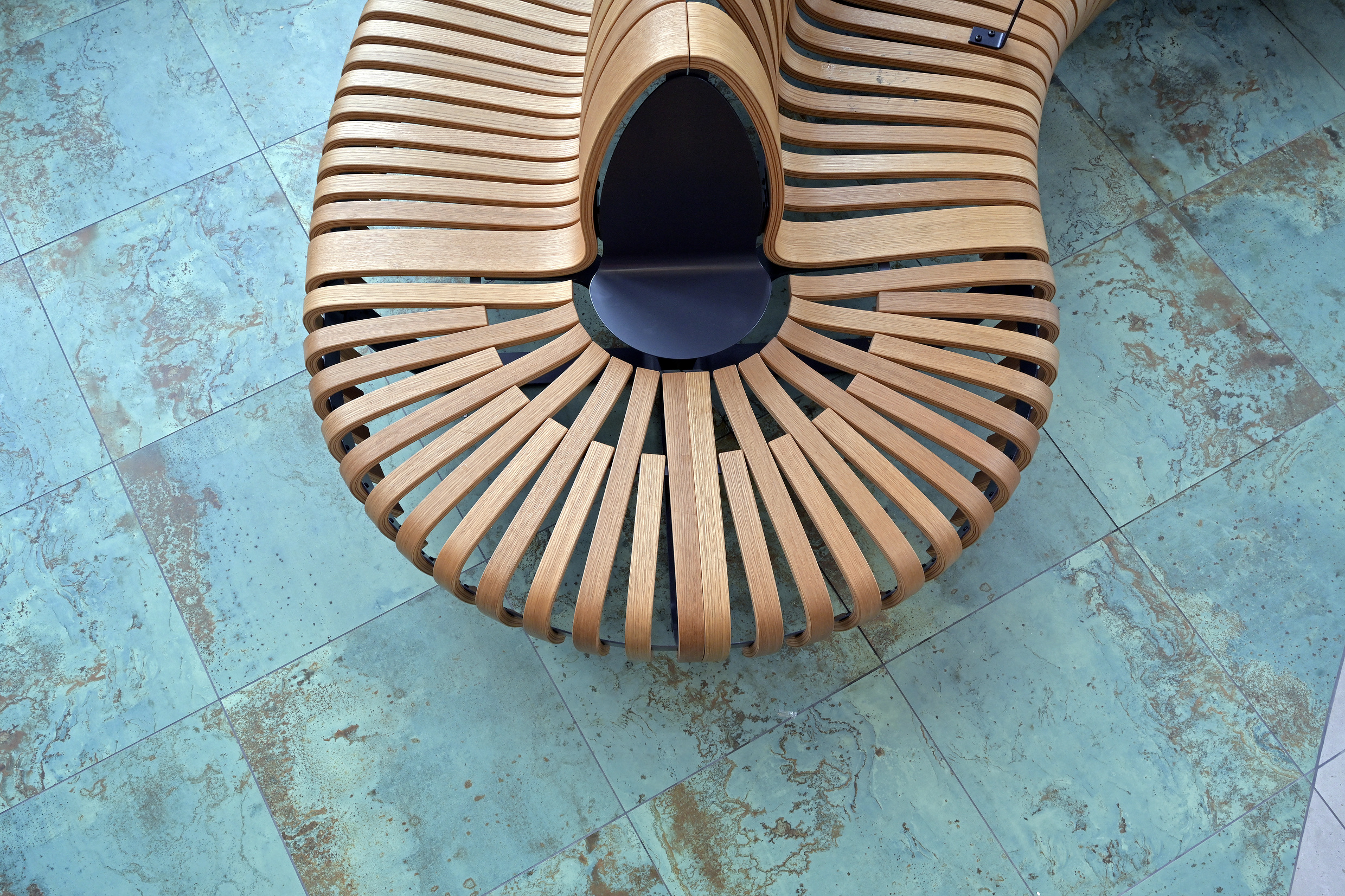 Claudia Gremer: Wir verfügen bei der Deutschen Bahn über ein Team aus Architekt:innen und Designer:innen. Sie haben die Pracht der Vergangenheit, also des alten Bahnhofs, sowie die städtische Architektur in ihr Gestaltungskonzept einfließen lassen. Uns war wichtig, die Form und Struktur des Bahnhofs beizubehalten. Also beschlossen wir, das Vordach so zu belassen, wie es war, und es nur zu renovieren. Die Architekt:innen griffen zum Beispiel die mintgrüne Farbe von der Uhr in der Eingangshalle auf. Dieses Farbschema zieht sich durch das komplette Bahnhofsgelände, von Fassadenelementen über die Fliesen in der Empfangshalle bis hin den Unterführungen und neuen Sitzgelegenheiten außerhalb des Bahnhofsgebäudes.
