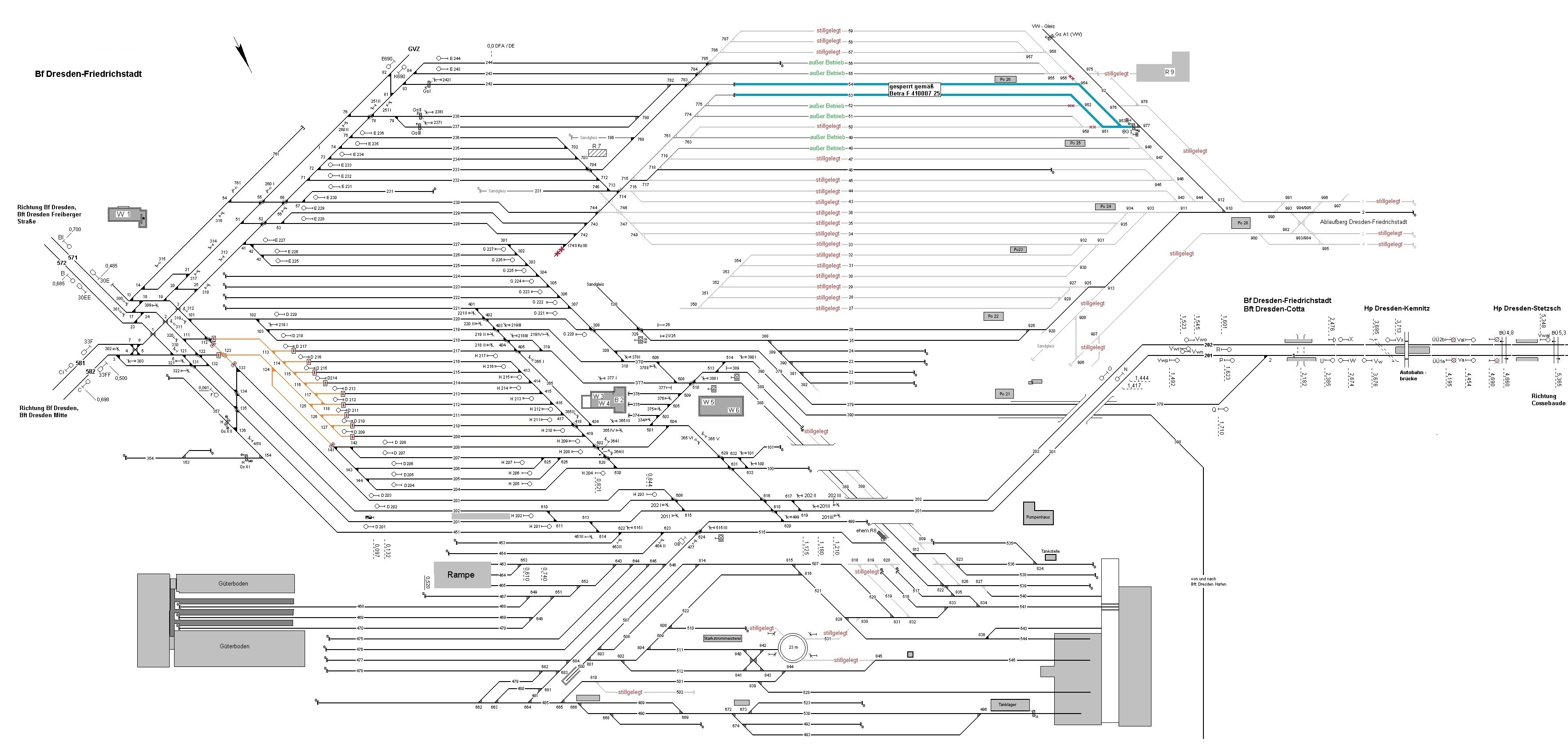 Während dieser Zeit gilt das aktuelle Bedienkonzept in Dresden-Friedrichstadt mit ausschließlicher Zuführung aus Richtung Dresden-Freiberger Straße und Dresden-Mitte.